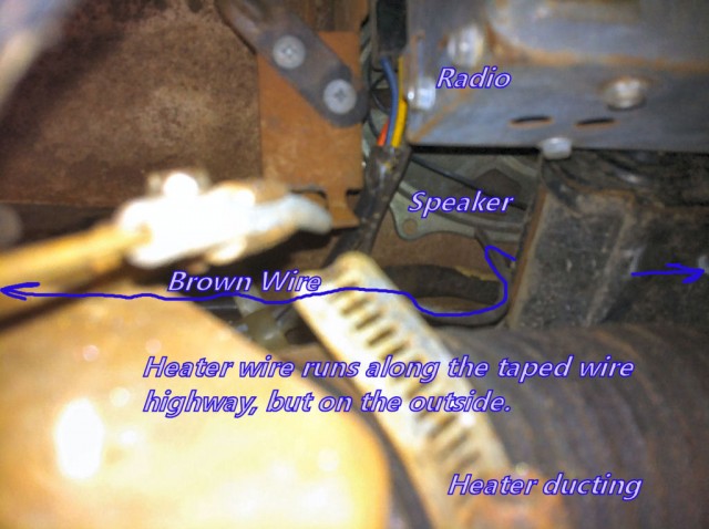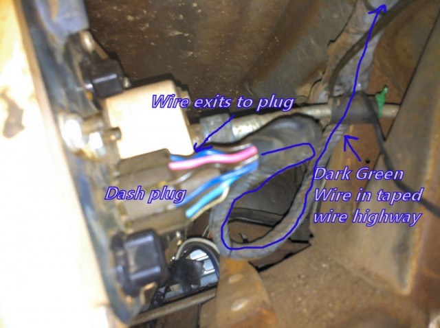 The brown heater wire runs from the switch there on the outside of the wire highway (taped up wires) to the dash, then down to the fuse box like someone else said. http://windypix.com/?dm=I0RP.jpg It ends up at the box and plugs into the side of the heater fuse thingy with a black or brown plug. Mine is here on the wrong plug, yours should be one lower than this. http://windypix.com/?dm=JCUP.jpg Ok, now the sending unit wire. You already know it ends on the sending unit by the top water hose off of the radiator. You can get those at NAPA for a couple of dollars. It starts behind the dash in the wire plug. http://windypix.com/?dm=68SX.jpg This is a weird pic, but it's looking up between the radio and the dash cluster. http://windypix.com/?dm=9P31.jpg Then it runs over behind the heater, hiding like a little girl. http://windypix.com/?dm=2QJ5.jpg I shoved my phone up there and got a pic anyway. Take that Engineering department! http://windypix.com/?dm=QRPJ.jpg It comes out of the firewall heahh, behind the coil. http://windypix.com/?dm=L0CN.jpg Then meanders down past the starter heahhh http://windypix.com/?dm=NYAD.jpg Then comes out Neahhhh with the alternator wiring (or gen if you have one). It's still dark green. And that's it. From here it just runs to the sending unit and plugs in. Tada! http://windypix.com/?dm=MM7B.jpg *disclaimer: Please don't blow yourself or your truck up by following my advice. It's probably all wrong anyway. :lolflag: |
