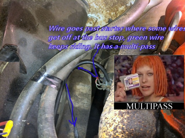 If yes to both, the quick and dirty fix: Extend that green wire, run it though any convenient hole in the firewall, and connect it to the temp sender. The "correct" fix: Find the green wire on the engine harness firewall connector. On the cabin side of the firewall, run a new wire from that terminal of the firewall connector to the cluster connector. On the engine side, find the green wire and see if it is long enough to reach the sender. If it isn't, replace the wire with a new one. If the above still isn't what you are looking for, please tell me what you need to know. On the second pic, I have no idea what I am supposed to be looking for, and the pic is too fuzzy to see much detail. Ray |