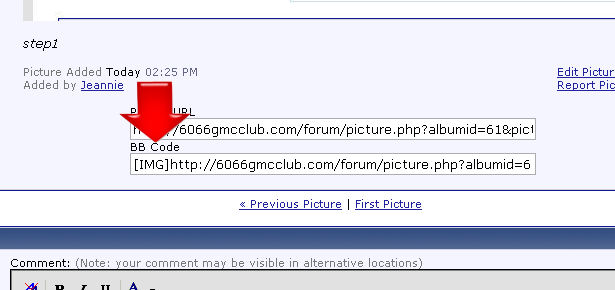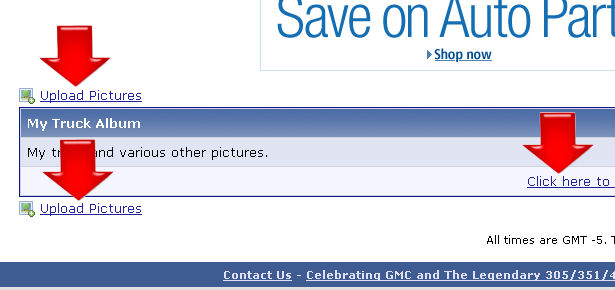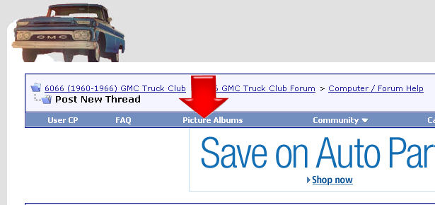 To create your own picture albums and enjoy the same fame follow the steps below. Browsing Users are allowed 10 pictures maximum, Registered Users and Donators are allowed 100, Site Supporters are allowed 1000, and Extreme Supporters are allowed 2000. There are 11 steps including tips. Step 1 Click the Picture Albums link at the top of the forum. http://6066gmcclub.com/forum/picture...&pictureid=649 Step 2 Click on the link titled "Create New Album" on the right. http://6066gmcclub.com/forum/picture...&pictureid=650 Step 3 Give your new album a title and optional description. Select your album's privacy. Only Public albums are shown on the main page. Click Submit to begin album creation. http://6066gmcclub.com/forum/picture...&pictureid=651 Step 4 Click on any of the three links to upload your photos. All links on this page are interchangeable. http://6066gmcclub.com/forum/picture...&pictureid=652 Step 5 Clicking on the choose buttons will allow you to browse your computer. You may choose up to 5 pictures. http://6066gmcclub.com/forum/picture...&pictureid=653 Step 6 Browse to your picture and select Open. http://6066gmcclub.com/forum/picture...&pictureid=654 Step 7 Click the Upload button. http://6066gmcclub.com/forum/picture...&pictureid=655 Step 8 The next page has several options. If you are happy you may simply click Save Changes to continue. Here you may give your picture a caption, move it to a different album if you have created several, set your picture as the album cover, or delete the picture entirely. http://6066gmcclub.com/forum/picture...&pictureid=656 Step 9 To add more pictures to an album click on Upload Pictures. If you are finished simply navigate away from the page. Your pictures will show up in the forum rotation momentarily if they are public. http://6066gmcclub.com/forum/picture...&pictureid=657 Step 10 Alternatively, you may choose to edit your images and album settings by clicking the link to the right of your album. http://6066gmcclub.com/forum/picture...&pictureid=658 Step 11 To post a link to a picture in your album click on the picture, then copy the BBCode shown under the picture. http://6066gmcclub.com/forum/picture...&pictureid=659 As always PM me if you have problems and I will be glad to help. :smileGMC2: |