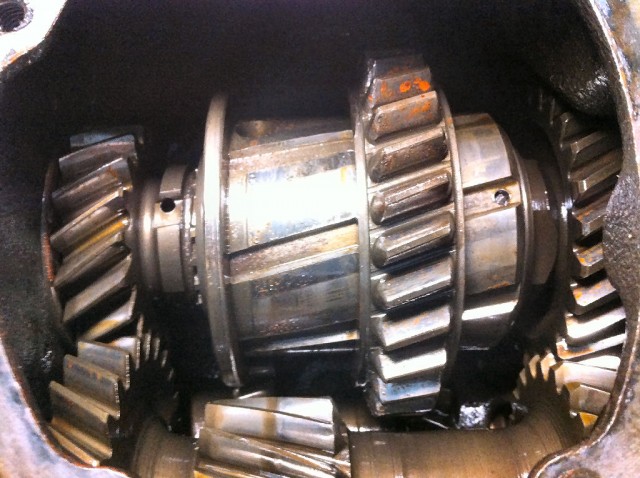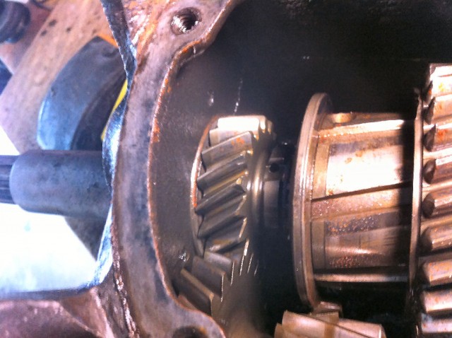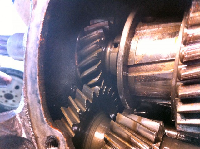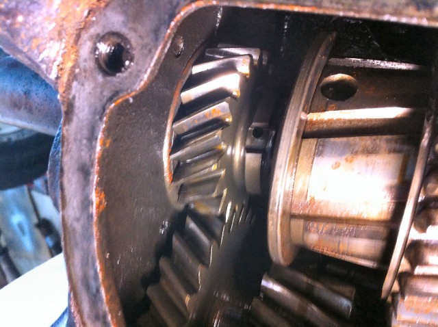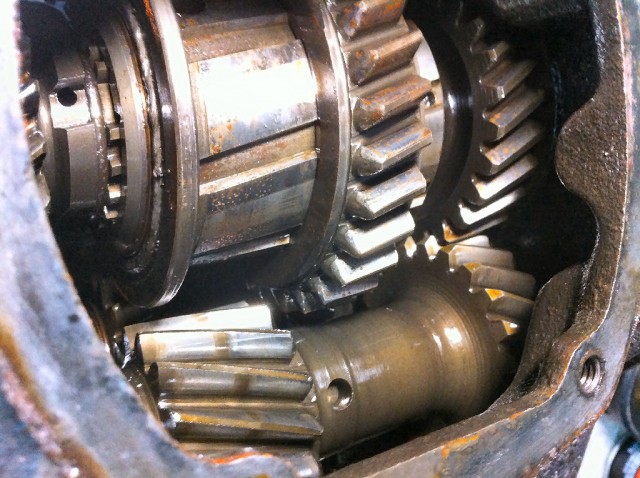 If you are going to check the input shaft bearing for endplay, re-install the bearing retainer first. If you don't, you can pull the shaft out far enough to lose the needle bearings inside it, and you really don't want to have to re-install those.